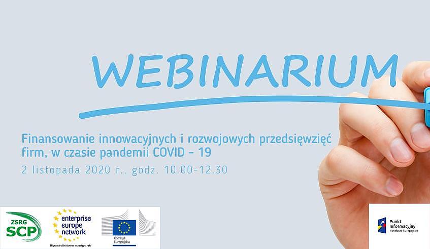 Enterprise Europe Network, afiliowany przy Zachodniopomorskim Stowarzyszeniu Rozwoju Gospodarczego – Szczecińskie Centrum Przedsiębiorczości oraz Główny Punkt Informacyjny Funduszy Europejskich w Szczecinie serdecznie zapraszają na webinarium "Finansowanie innowacyjnych i rozwojowych przedsięwzięć firm w czasie pandemii COVID-19".