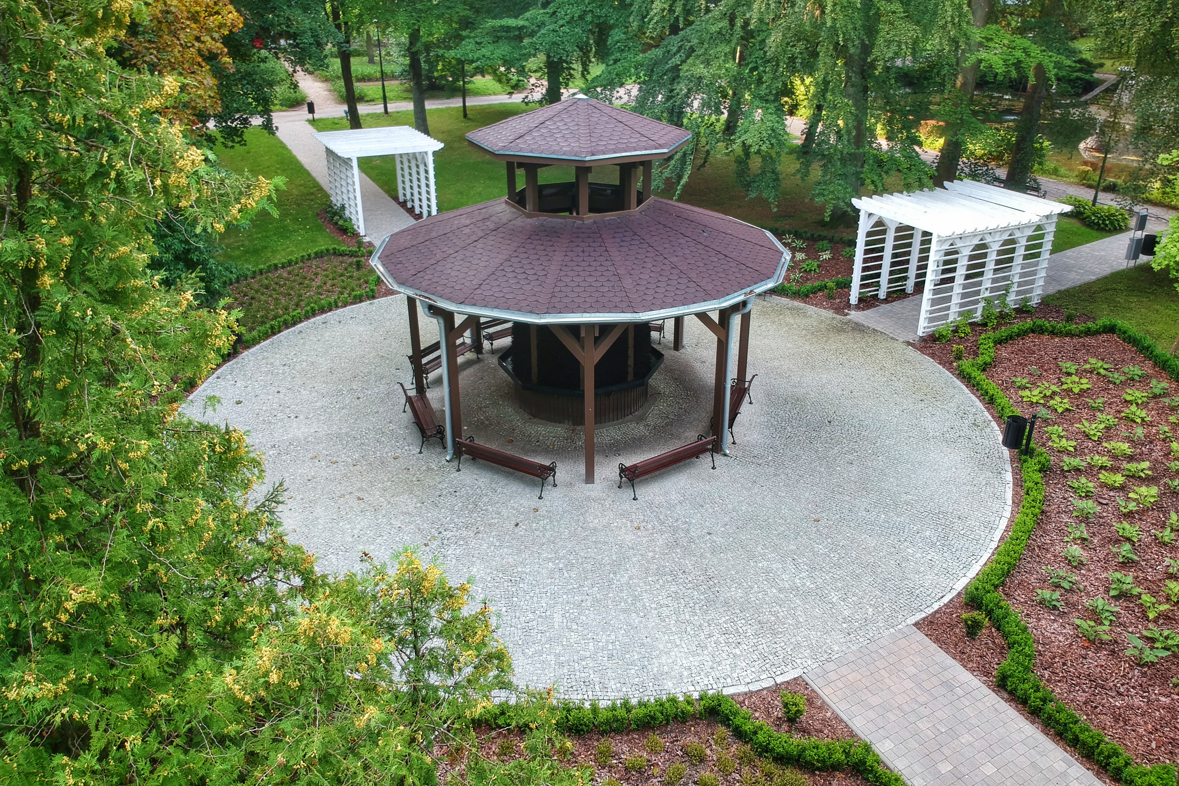 The park in Połczyn-Zdrój is one of the largest spa parks in Poland. The town manages an area of about 80 ha, of which nearly 30 ha is protected due to its historic character. For many years, smaller or larger investments have been implemented to improve the image and attractiveness of the park. As part of the project, the following construction and installation tasks were carried out:
