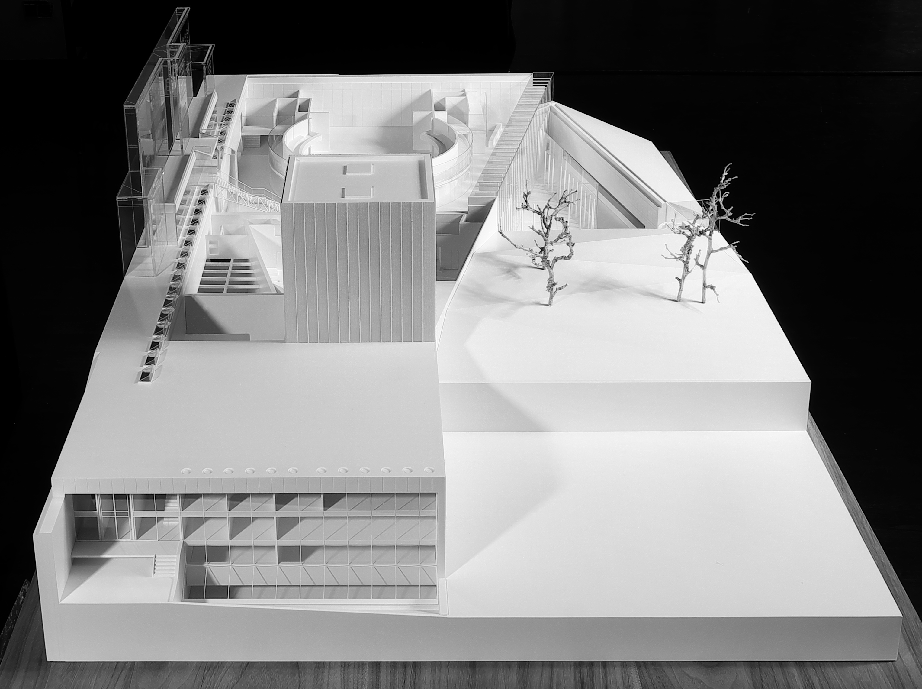 Trzecim materiałem decydującym o charakterze budynku będzie stal, z której zaprojektowano monumentalne schody, łączące poszczególne kondygnacje wnętrz oraz okładziny elementów architektonicznych wyłaniających się z zielonego dachu. Inwestycja pozwoli na maksymalne wpisanie nowo projektowanej kubatury w istniejącą rzeźbę terenu. Nowe sceny teatralne będą pierwszymi profesjonalnymi scenami dramatycznymi w Szczecinie.